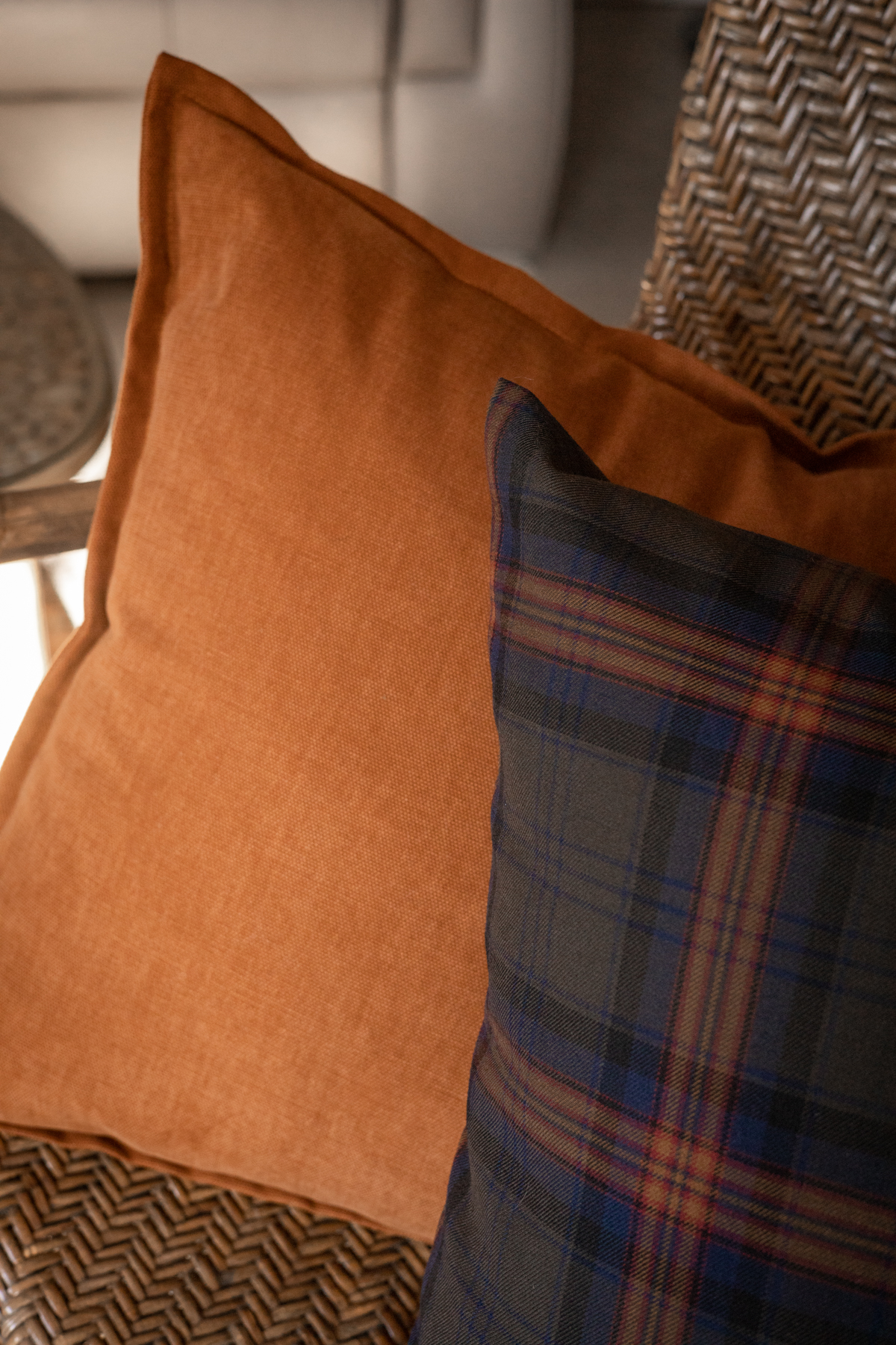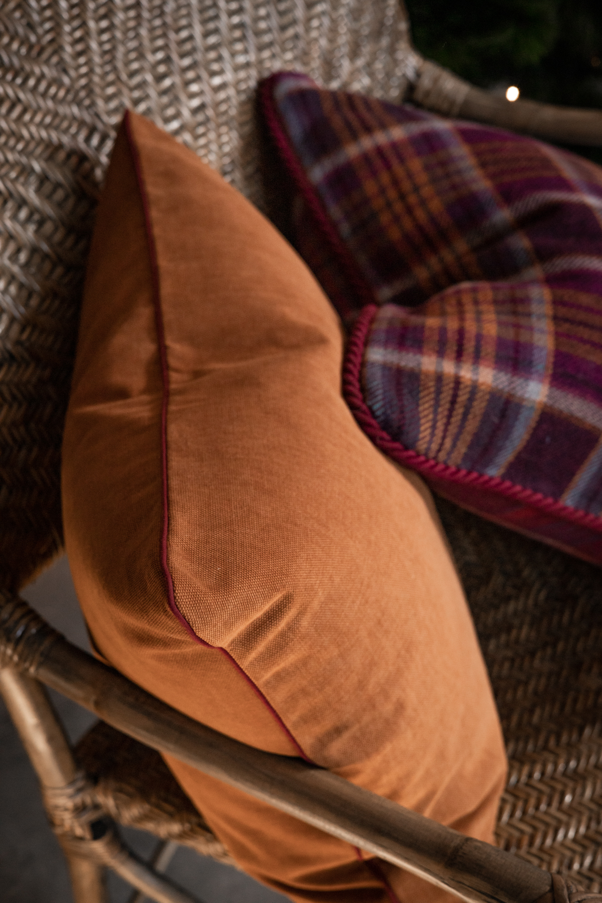 Poszewka dekoracyjna z wyraźną strukturą. Solidny materiał w 100% bawełniany, lekko przypominający jeans, w głębokim rudym kolorze. Poszewka odporna na ścieranie i gniecenie. Wykonana z wielką starannością. Poszewka dekoracyjna zamykana na kryty zamek. Do wyboru opcja z delikatną, bordową wypustką lub z prostym, 1cm obszyciem. Wybrany wariant do zaznaczenia przy wyborze rozmiaru.
