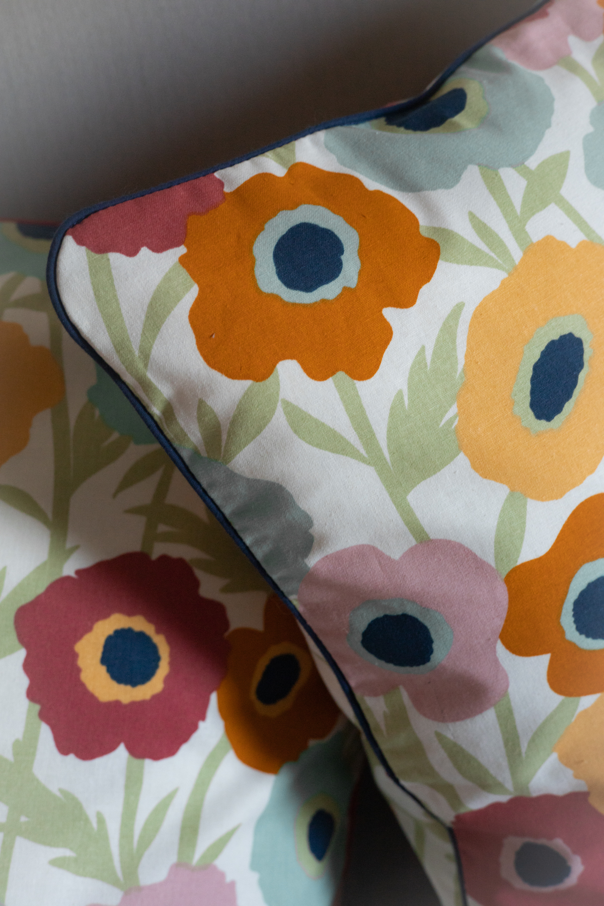 Bawełniana poszewka dekoracyjna z wysokiej jakości nadrukiem. Poszewka w pastelowe kwiaty, wykończona bawełnianą wypustką.