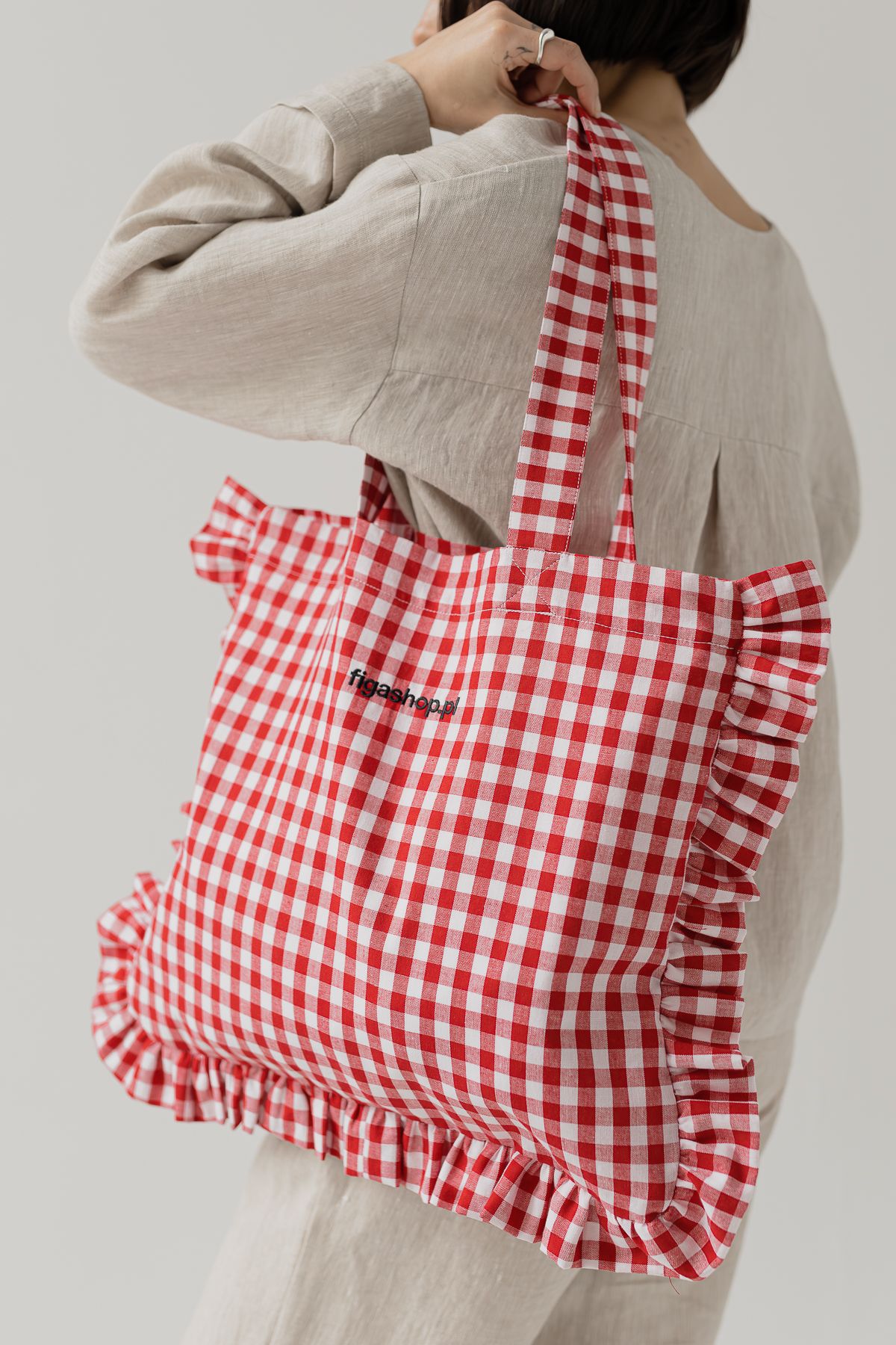 Torba shopper z falbaną — Vichy Red