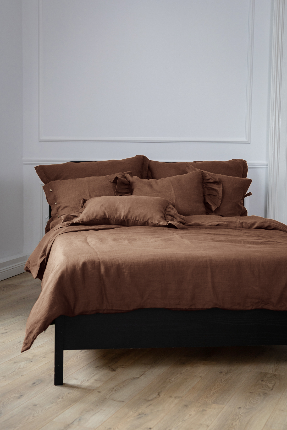 W 100% lniana brązowa pościel Mocha wykonana z pięknej, mięsistej tkaniny w kolorze jasnego brązu. Jest masywna i miękka. Nie elektryzuje się i nie obiera. Użyty len typu stonewashed, charakteryzuje się delikatnością, nie wstępuje się po praniu i nie wymaga prasowania. Poszwa pięknie prezentuje się w komplecie jednolitym lub zestawiona z innymi naszymi poszewkami. W przypadku mixowania kolorów, produkty należy zamówić oddzielnie.