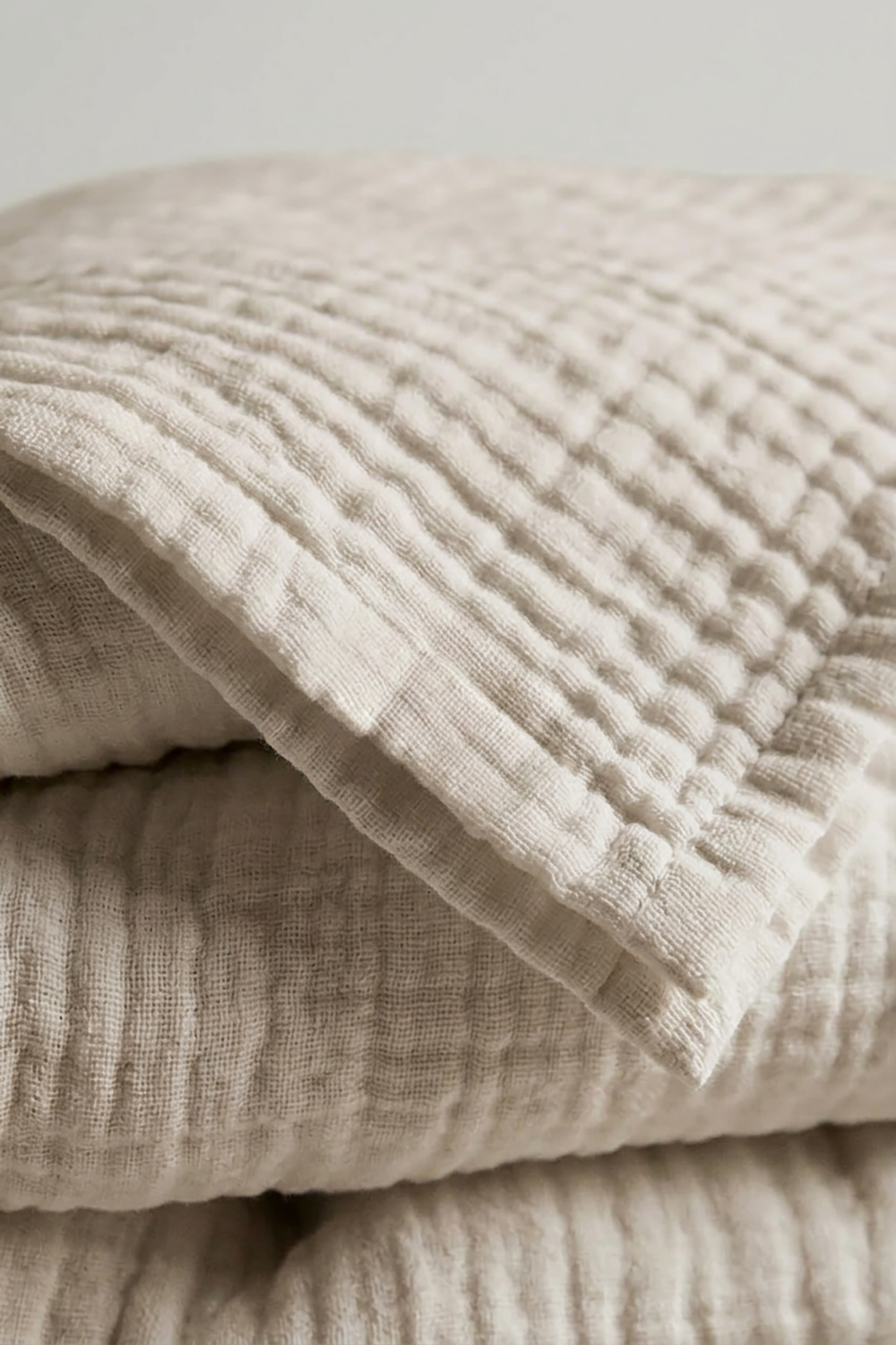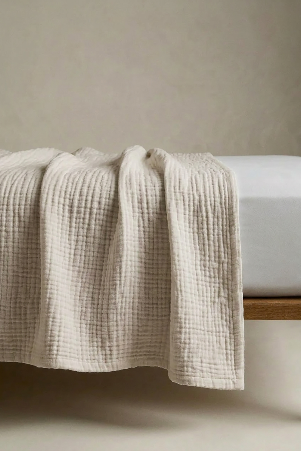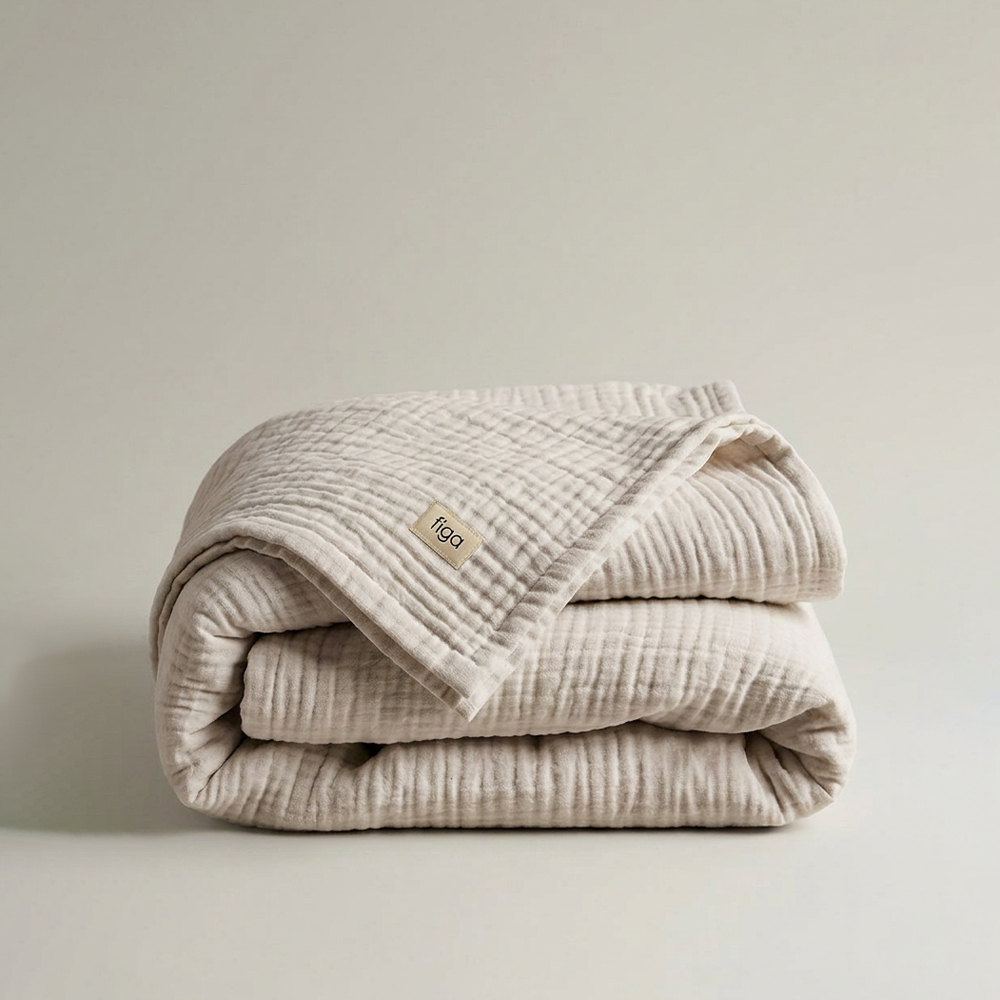 Nasza narzuta została wykonana z wyjątkowo miękkiego, 8-warstwowego muślinu bawełnianego, który zachwyca swoją delikatnością i subtelną strukturą. To idealne połączenie funkcjonalności i minimalistycznej estetyki.