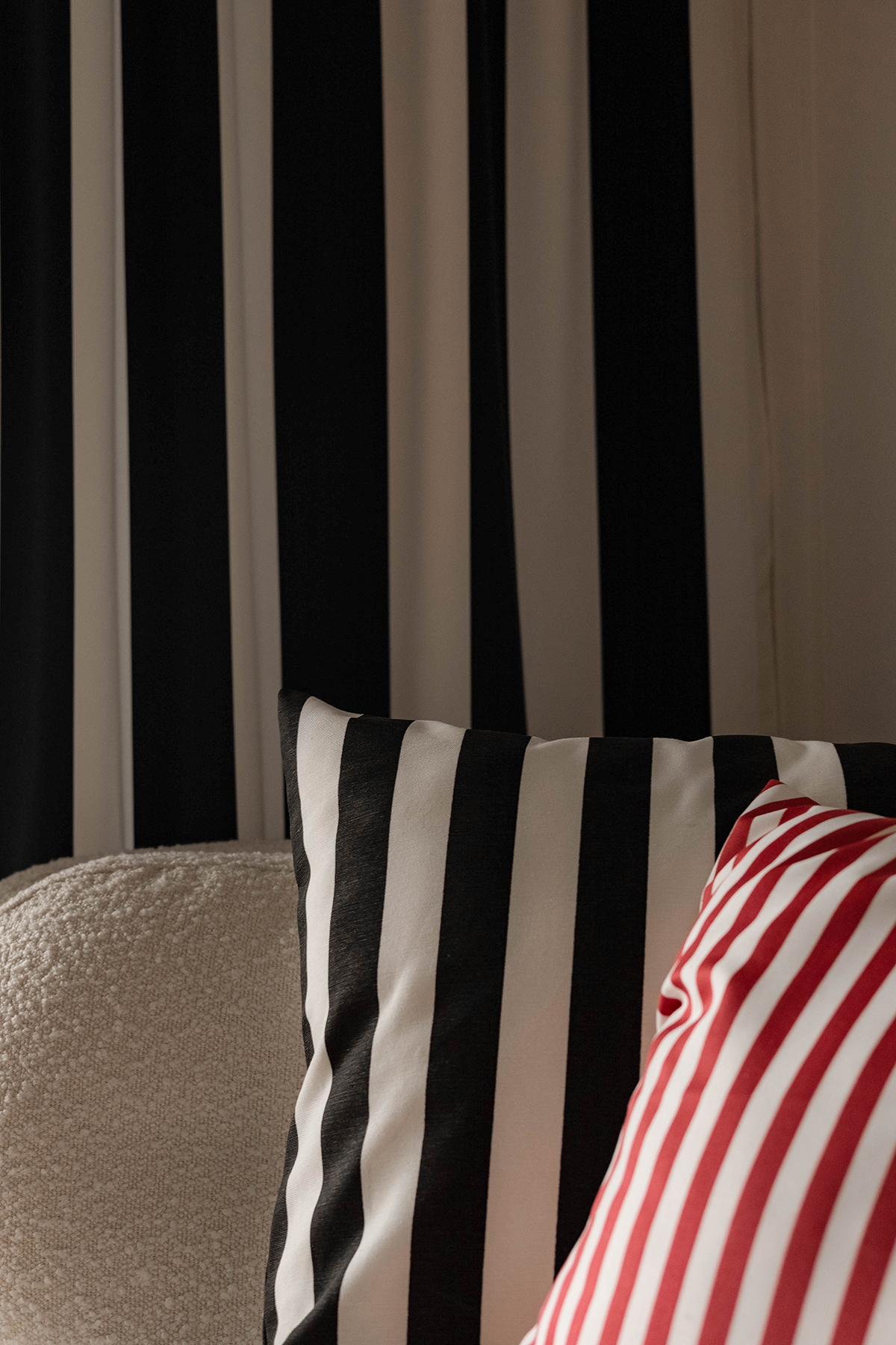 Głęboka, intensywna czerwień w połączeniu z bielą tworzy wzór prosty i nietuzinkowy zarazem.