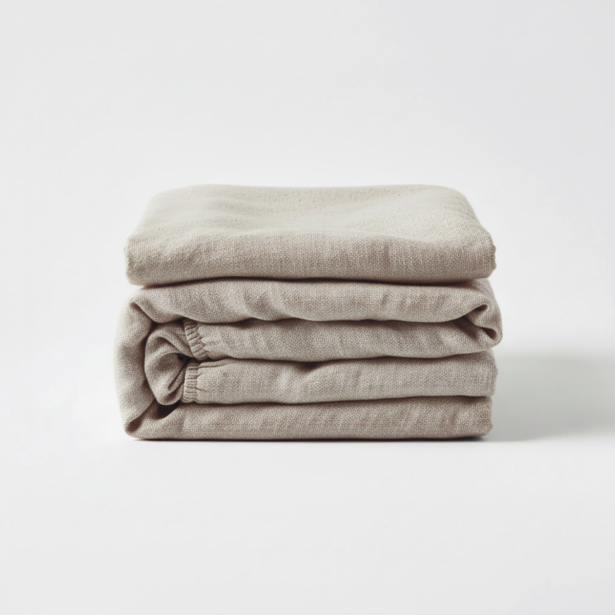 Prześcieradło z gumką w naturalnym, melanżowym odcieniu lnu.