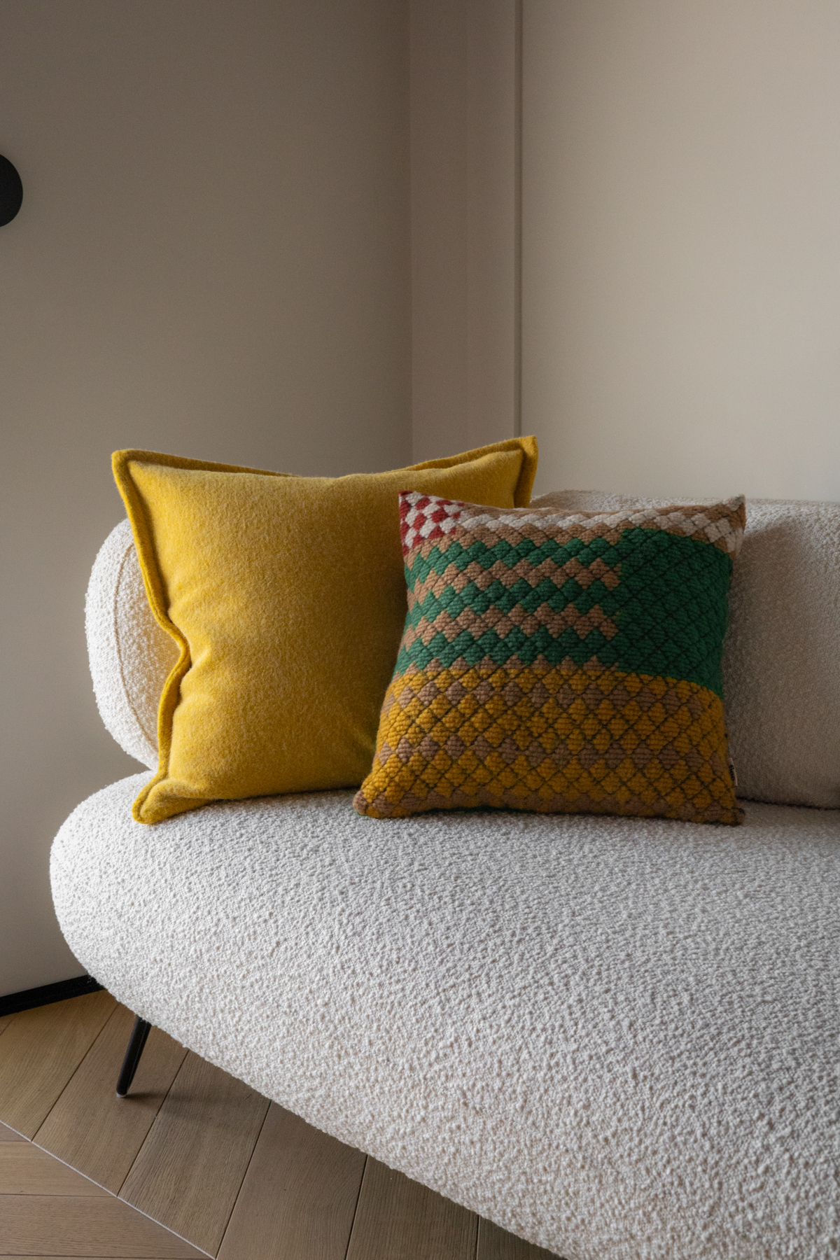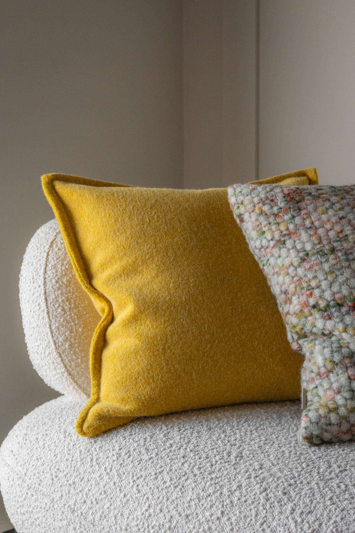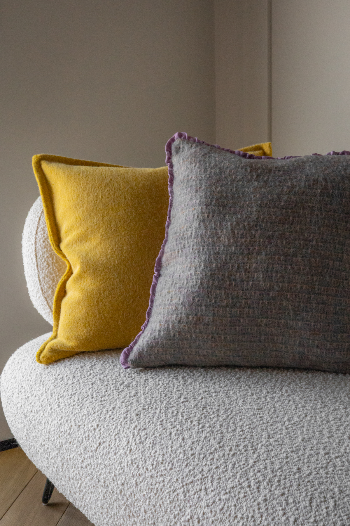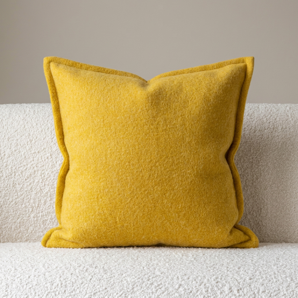 Poszewka dekoracyjna z wełny 100%. Najwyższej jakości gładka i przyjemna w dotyku tkanina w odcieniu słonecznej żółci. Materiał o lekko włoskowatej strukturze. Wykonana z wielką starannością.